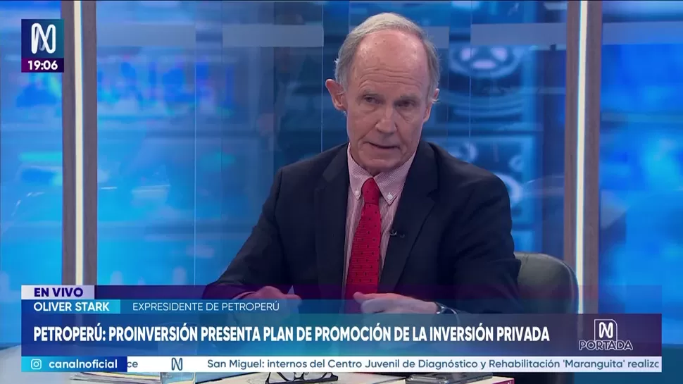 N PortadaPetroperú: Proinversión presenta plan de promoción de la inversión privadaN Portada / Canal NN Portada, de lunes a viernes a partir de las 07:00 p.m. por Canal N TagsN PortadaRelacionadasBalace de las primeras fechas del debate presidencialJorge Zapata: Si no se reforma Petroperú, vamos a seguir con el mismo problemaMartín Valencia: Apoyo a Petroperú suma S/ 25 000 millones desde 2013Romy Chang: Elección de Gálvez era lo más predecible, pero de positivo no tiene nadaFernando Rospigliosi: Yo no he conocido a PolayLos efectos de la caída del gabinete Miralles