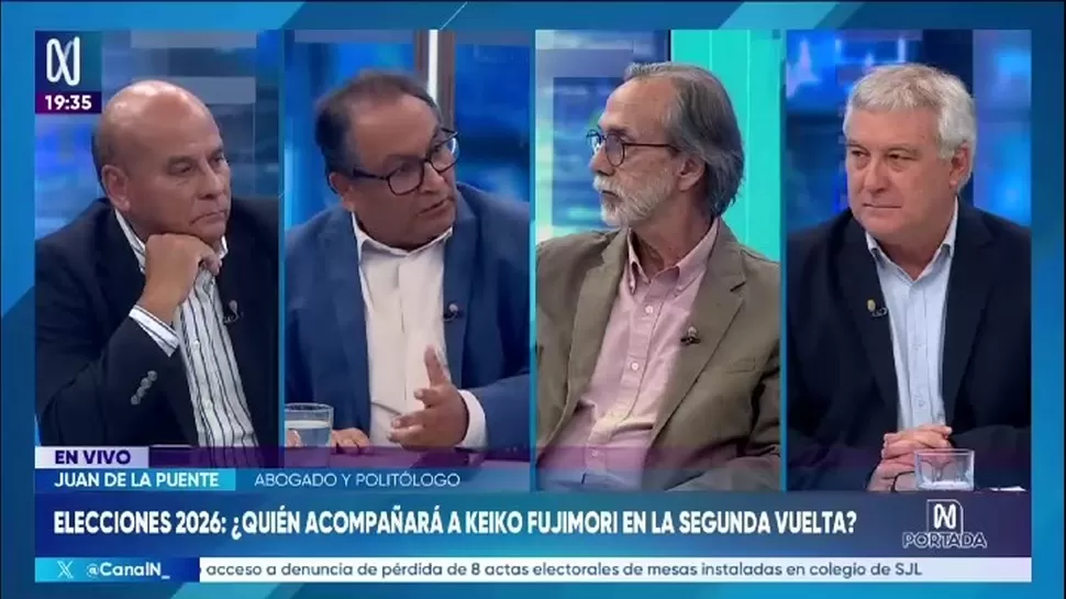N Portada¿Quién acompañará a Keiko Fujimori en la segunda vuelta?N Portada / Canal NN Portada, de lunes a viernes a partir de las 07:00 p.m. por Canal N TagsN PortadaRelacionadasAlerta de El Niño costero se mantiene hasta inicio del 2027Martín Valencia: Subida del dólar responde al temor por posible presidencia de Roberto SánchezErnesto Álvarez: La ley electoral es bastante antigua y desfasada Enrique Ghersi: En el JNE no hay personajes polémicos como Salas ArenasKarol Paredes: "Vamos escuchar al premier, necesitamos algunas respuestas"Jesús Salazar: "Lo que necesitamos es serenidad para salvar nuestro país"