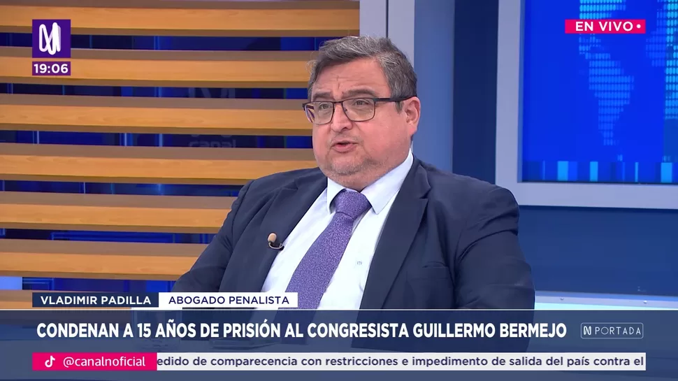N PortadaVladimir Padilla: El caso de Bermejo está con el antiguo código procesal N Portada / Canal NN Portada, de lunes a viernes a partir de las 07:00 p.m. por Canal N TagsN PortadaRelacionadasJorge Montoya: Nunca estuve de acuerdo con la vacanciaErnesto Álvarez: Creo que Magallanes intentó cumplir su deberJuan Aurelio Arévalo Miró Quesada: El 2024 se registraron más de 290 agresiones contra periodistasJulio Rodríguez: La JNJ sí ha cumplido la medida cautelar que ordena reponer a Delia EspinozaPhillip Butters: Me ubico en el centro derechoDavid Tuesta: Ley que eleva pensiones para docentes será primera prueba de fuego para el presidente Jerí