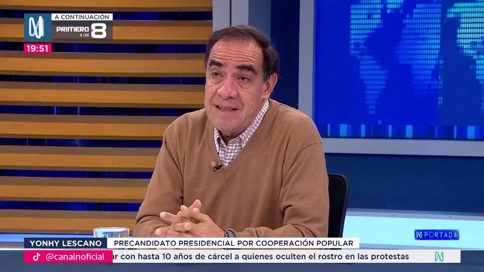 N PortadaYonhy Lescano: Me voy a encargar de revisar la lista de candidatos cuestionadosYonhy LescanoN Portada, de lunes a viernes a partir de las 07:00 p.m. por Canal N TagsN PortadaRelacionadasJuárez Atoche: Quieren traerse abajo el caso porque vincula a Lula da SilvaWilber Medina: Si se activa la cláusula anticorrupción todos los arbitrajes se caen Fernando de la Torre: En los concursos de Petroperú no se revela el monto referencial y eso afecta la transparencia del procesoOmar Awapara: La gira nacional de Jerí lo proyecta políticamente más allá de su mandatoCarlos Caro: la JNJ debe cumplir con reponer a Delia EspinozaJosé Cueto: Hay que ser un poco más radicales con el tema del estado de emergencia