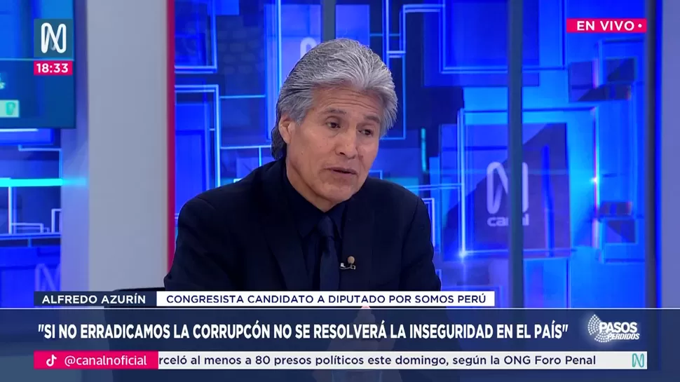 El congresista y candidato Alfredo Azurín abordó su labor en la Comisión de Seguridad Ciudadana, denunciando graves deficiencias en infraestructura policial, falta de personal en inteligencia y persistencia de corrupción dentro de la policía. Apoya medidas como restringir el uso de motos por dos personas como parte de un enfoque integral, pero señala que requieren tiempo para dar resultados. Cuestionó duramente el comportamiento del presidente encargado José Jerí y pidió transparencia a las autoridades. Frente a una posible vacancia, pidió cautela y esperar pruebas claras, reiterando que el país necesita funcionarios comprometidos con la verdad