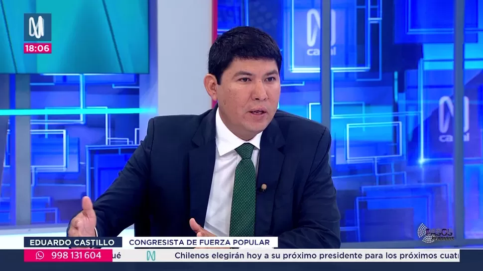 Eduardo Castillo defendió la labor del presidente José Jerí, destacando su cercanía con la población en un contexto de transición. Admitió el desprestigio del Congreso y se deslindó de los escándalos individuales, subrayando las acciones de su bancada. Afirmó que la inseguridad requiere una ofensiva más contundente, aunque valoró algunas medidas recientes. Cuestionó la severidad de una propuesta contra manifestantes encapuchados y rechazó frontalmente la postulación de Pedro Castillo
